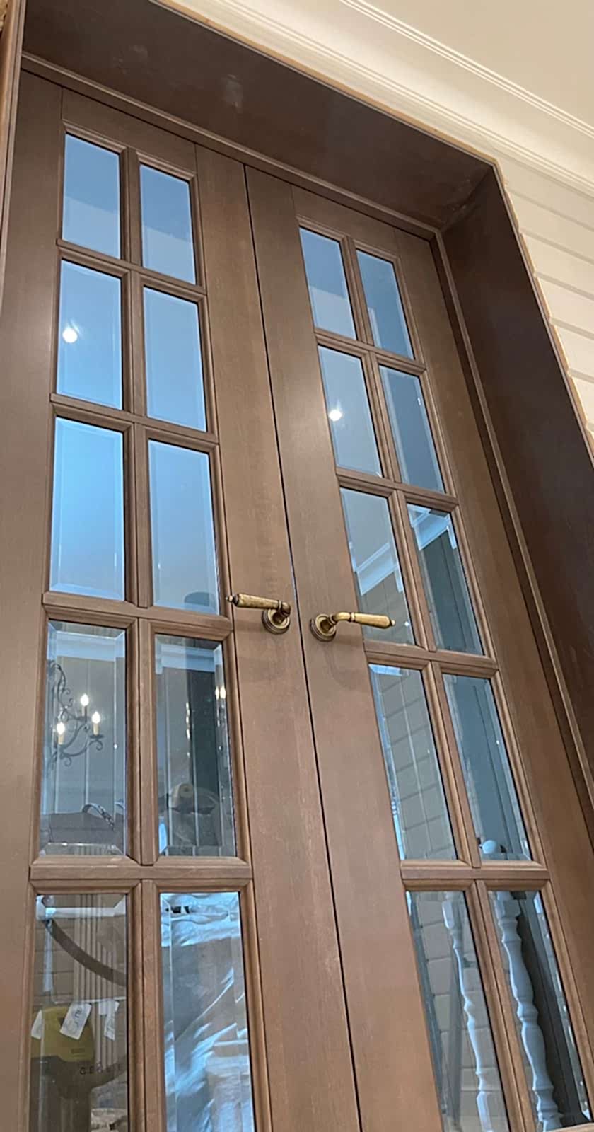 двери в комбинации с декоративными Pin-Up витражами,фурнитуройи скрытыми коробами.