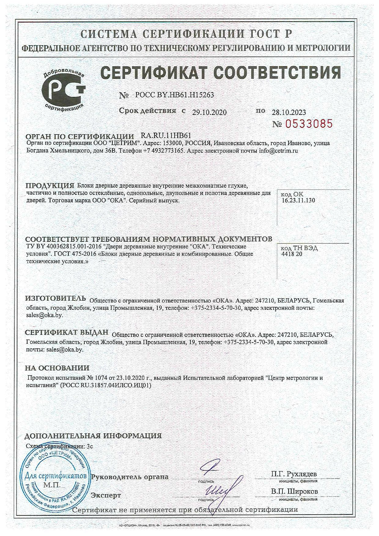 Сертификаты - это не просто бумага, а Pin-Up того, что продукция Двери Ока прошла испытания, тесты и полностью соответствует заявленным характеристикам. Мы соблюдаем нормы при поставках как в розницу, так и при комплексной работе с застройщиками в Астане и Ленобласти.